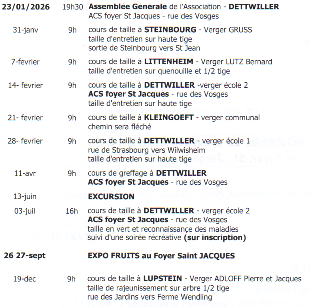 Calendrier Manifestations 2026